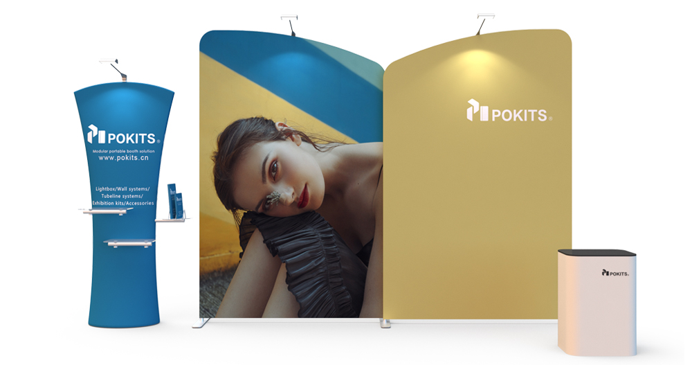 In order to make small and medium-sized individual stand easier, we designed and developed a series of modular individual stand kits. The frame use lightweight but strong aluminum alloy round tube, with dye sublimation printing graphic on the wrinkle-resistant stretch textile. It can be installed in about 10 minutes without tools. The dye sublimation printing is vivid and bright.Each set of stand can be combined into a booth for exhibitions or promotional display, and each element can be used separately as display background of poster .