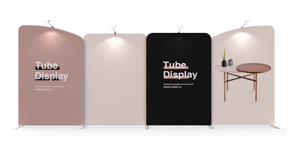 In order to make small and medium-sized individual stand easier, we designed and developed a series of modular individual stand kits. The frame use lightweight but strong aluminum alloy round tube, with dye sublimation printing graphic on the wrinkle-resistant stretch textile. It can be installed in about 10 minutes without tools. The dye sublimation printing is vivid and bright.Each set of stand can be combined into a booth for exhibitions or promotional display, and each element can be used separately as display background of poster .
