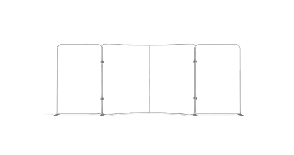 In order to make small and medium-sized individual stand easier, we designed and developed a series of modular individual stand kits. The frame use lightweight but strong aluminum alloy round tube, with dye sublimation printing graphic on the wrinkle-resistant stretch textile. It can be installed in about 10 minutes without tools. The dye sublimation printing is vivid and bright.Each set of stand can be combined into a booth for exhibitions or promotional display, and each element can be used separately as display background of poster .