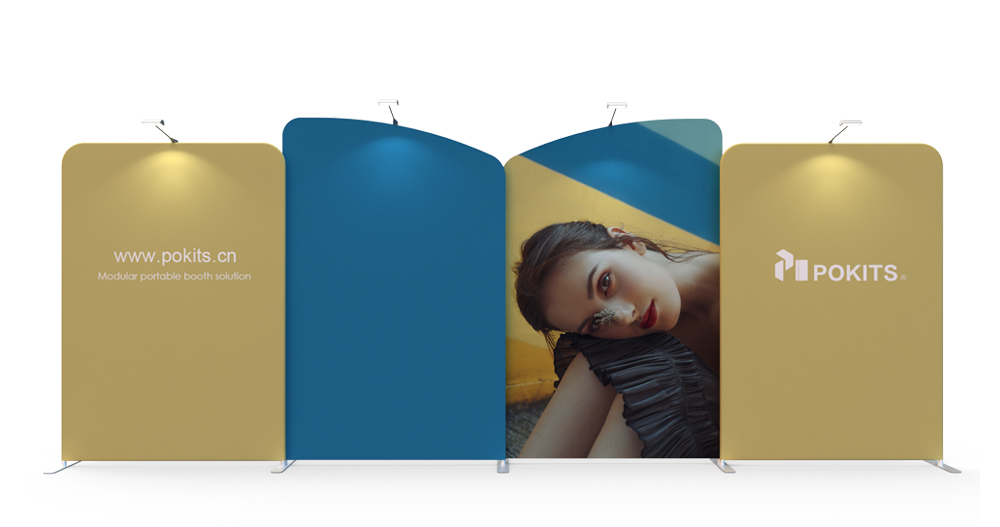 In order to make small and medium-sized individual stand easier, we designed and developed a series of modular individual stand kits. The frame use lightweight but strong aluminum alloy round tube, with dye sublimation printing graphic on the wrinkle-resistant stretch textile. It can be installed in about 10 minutes without tools. The dye sublimation printing is vivid and bright.Each set of stand can be combined into a booth for exhibitions or promotional display, and each element can be used separately as display background of poster .