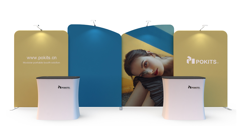 In order to make small and medium-sized individual stand easier, we designed and developed a series of modular individual stand kits. The frame use lightweight but strong aluminum alloy round tube, with dye sublimation printing graphic on the wrinkle-resistant stretch textile. It can be installed in about 10 minutes without tools. The dye sublimation printing is vivid and bright.Each set of stand can be combined into a booth for exhibitions or promotional display, and each element can be used separately as display background of poster .