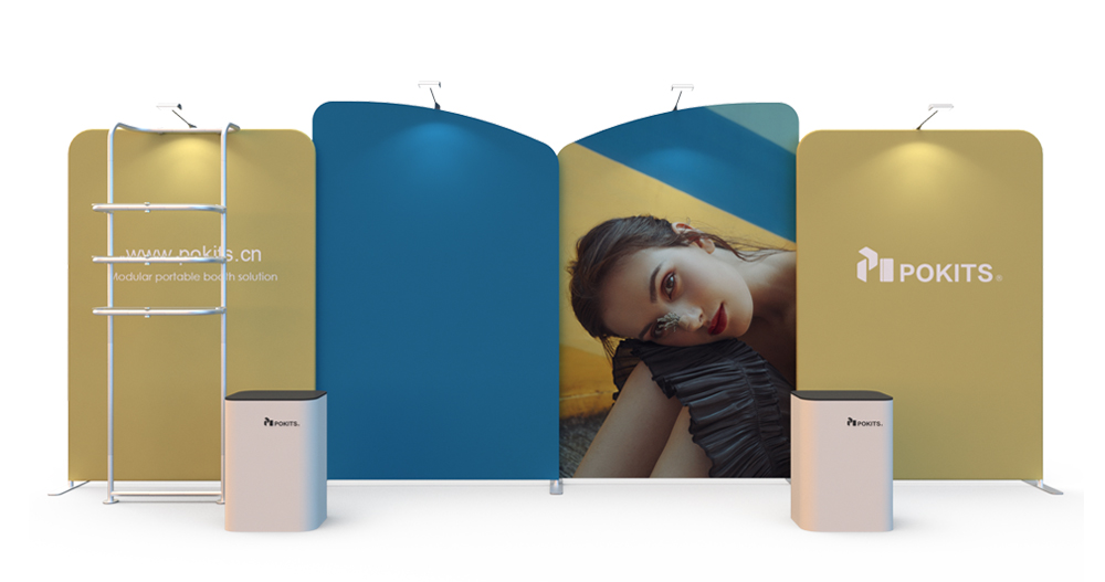 In order to make small and medium-sized individual stand easier, we designed and developed a series of modular individual stand kits. The frame use lightweight but strong aluminum alloy round tube, with dye sublimation printing graphic on the wrinkle-resistant stretch textile. It can be installed in about 10 minutes without tools. The dye sublimation printing is vivid and bright.Each set of stand can be combined into a booth for exhibitions or promotional display, and each element can be used separately as display background of poster .