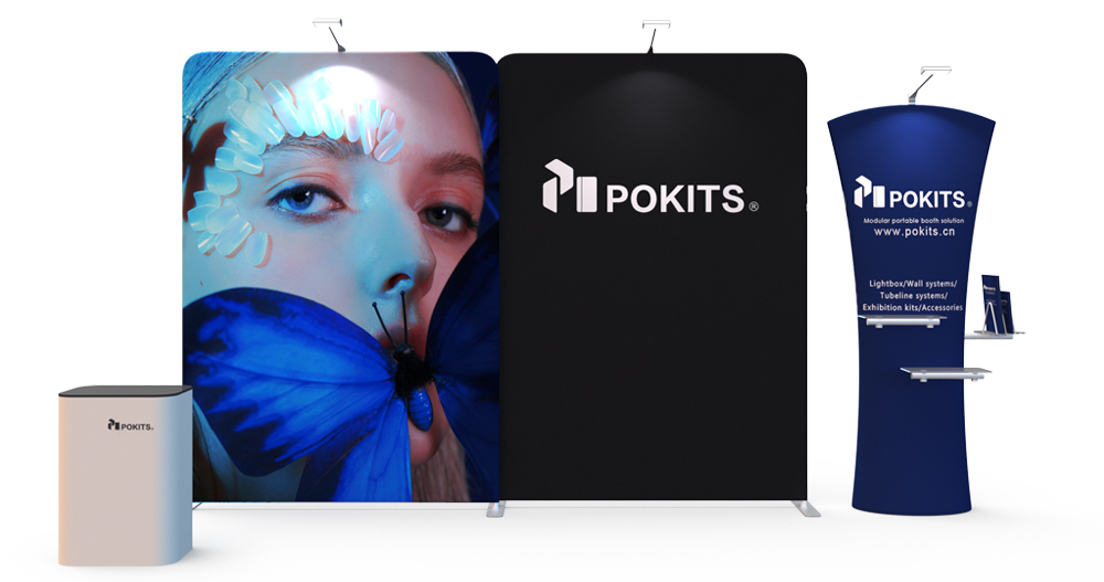 In order to make small and medium-sized individual stand easier, we designed and developed a series of modular individual stand kits. The frame use lightweight but strong aluminum alloy round tube, with dye sublimation printing graphic on the wrinkle-resistant stretch textile. It can be installed in about 10 minutes without tools. The dye sublimation printing is vivid and bright.Each set of stand can be combined into a booth for exhibitions or promotional display, and each element can be used separately as display background of poster .