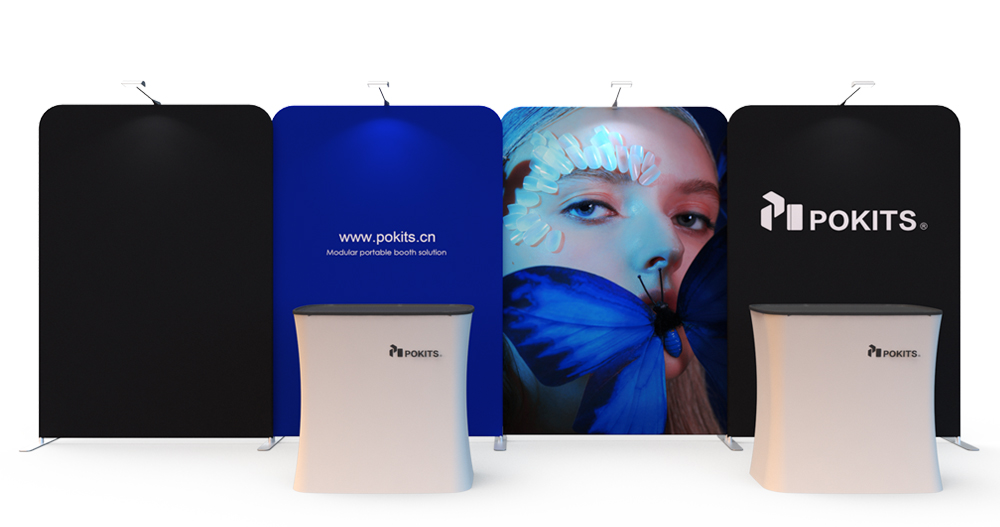 In order to make small and medium-sized individual stand easier, we designed and developed a series of modular individual stand kits. The frame use lightweight but strong aluminum alloy round tube, with dye sublimation printing graphic on the wrinkle-resistant stretch textile. It can be installed in about 10 minutes without tools. The dye sublimation printing is vivid and bright.Each set of stand can be combined into a booth for exhibitions or promotional display, and each element can be used separately as display background of poster .