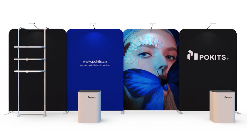 In order to make small and medium-sized individual stand easier, we designed and developed a series of modular individual stand kits. The frame use lightweight but strong aluminum alloy round tube, with dye sublimation printing graphic on the wrinkle-resistant stretch textile. It can be installed in about 10 minutes without tools. The dye sublimation printing is vivid and bright.Each set of stand can be combined into a booth for exhibitions or promotional display, and each element can be used separately as display background of poster .