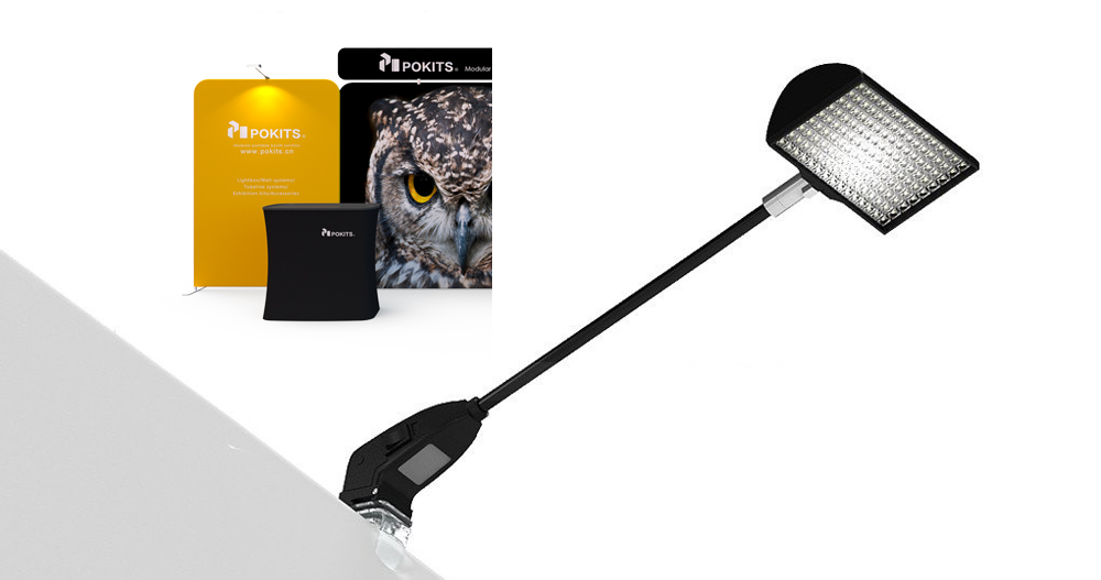 LED arm light with C shape clip,monitor bracketpacking box transformable to be a reception counter (black table top,dye sublimation graphic)