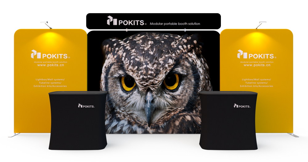 In order to make small and medium-sized individual stand easier, we designed and developed a series of modular individual stand kits. The frame use lightweight but strong aluminum alloy round tube, with dye sublimation printing graphic on the wrinkle-resistant stretch textile. It can be installed in about 10 minutes without tools. The dye sublimation printing is vivid and bright.Each set of stand can be combined into a booth for exhibitions or promotional display, and each element can be used separately as display background of poster .