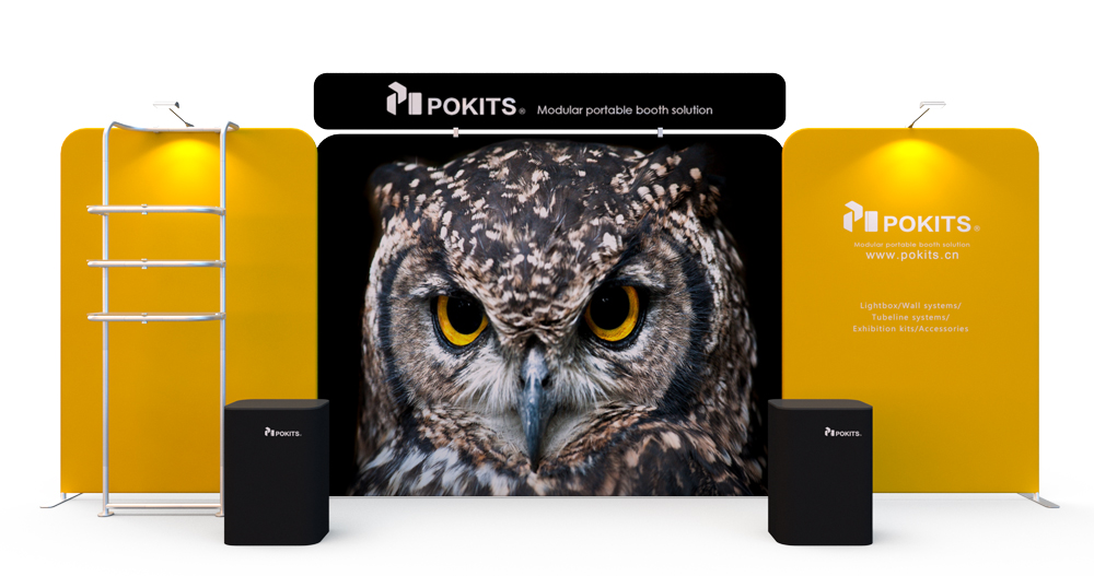 In order to make small and medium-sized individual stand easier, we designed and developed a series of modular individual stand kits. The frame use lightweight but strong aluminum alloy round tube, with dye sublimation printing graphic on the wrinkle-resistant stretch textile. It can be installed in about 10 minutes without tools. The dye sublimation printing is vivid and bright.Each set of stand can be combined into a booth for exhibitions or promotional display, and each element can be used separately as display background of poster .