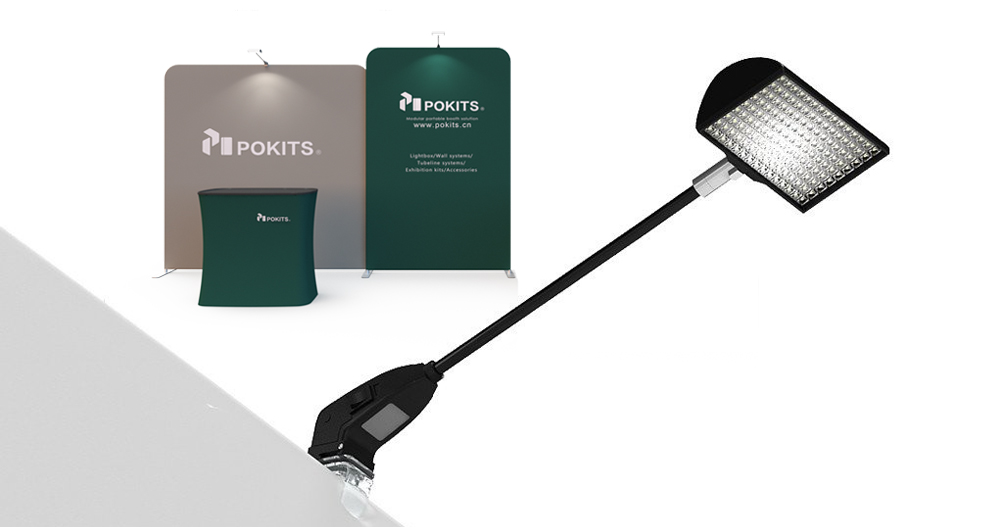 LED arm light with C shape clip,monitor bracketpacking box transformable to be a reception counter (black table top,dye sublimation graphic)