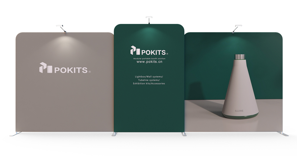 In order to make small and medium-sized individual stand easier, we designed and developed a series of modular individual stand kits. The frame use lightweight but strong aluminum alloy round tube, with dye sublimation printing graphic on the wrinkle-resistant stretch textile. It can be installed in about 10 minutes without tools. The dye sublimation printing is vivid and bright.Each set of stand can be combined into a booth for exhibitions or promotional display, and each element can be used separately as display background of poster .