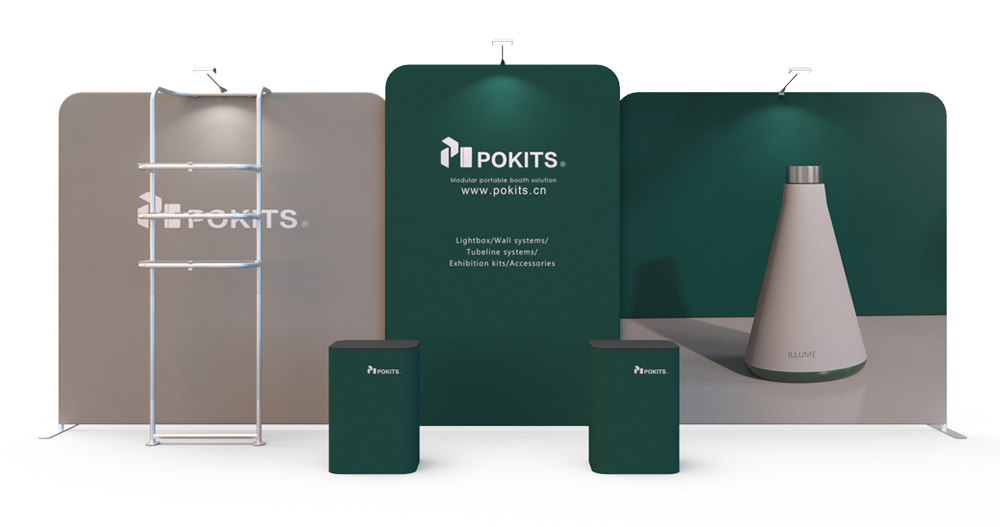 In order to make small and medium-sized individual stand easier, we designed and developed a series of modular individual stand kits. The frame use lightweight but strong aluminum alloy round tube, with dye sublimation printing graphic on the wrinkle-resistant stretch textile. It can be installed in about 10 minutes without tools. The dye sublimation printing is vivid and bright.Each set of stand can be combined into a booth for exhibitions or promotional display, and each element can be used separately as display background of poster .