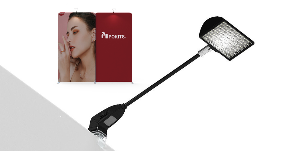 LED arm light with C shape clip,monitor bracketpacking box transformable to be a reception counter (black table top,dye sublimation graphic)