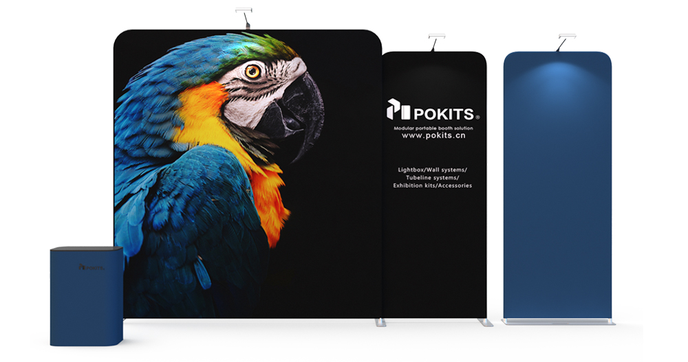 In order to make small and medium-sized individual stand easier, we designed and developed a series of modular individual stand kits. The frame use lightweight but strong aluminum alloy round tube, with dye sublimation printing graphic on the wrinkle-resistant stretch textile. It can be installed in about 10 minutes without tools. The dye sublimation printing is vivid and bright.Each set of stand can be combined into a booth for exhibitions or promotional display, and each element can be used separately as display background of poster .