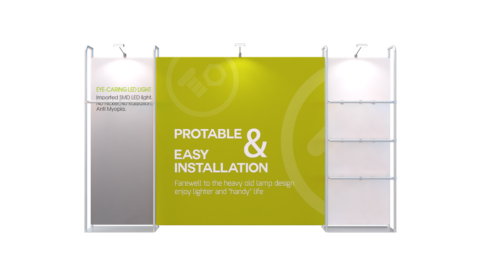 This is a portable modular display system designed specifically for retail stores. With aluminum round tube as frame, equipped with shelves, clothes rails, LED screen, lights and other components. Quick installation without tools.Dye sublimation printing graphic on stretch textile is colorful and bright. The aluminum tubes are connected by spring pin, then cover the graphic banner on the aluminum tube frame, and close with zipper at the bottom .You can quickly fix the graphic banner on the frame, because it is elastic.The graphic is flat and not wrinkled.The graphic can be single-sided or double-sided.