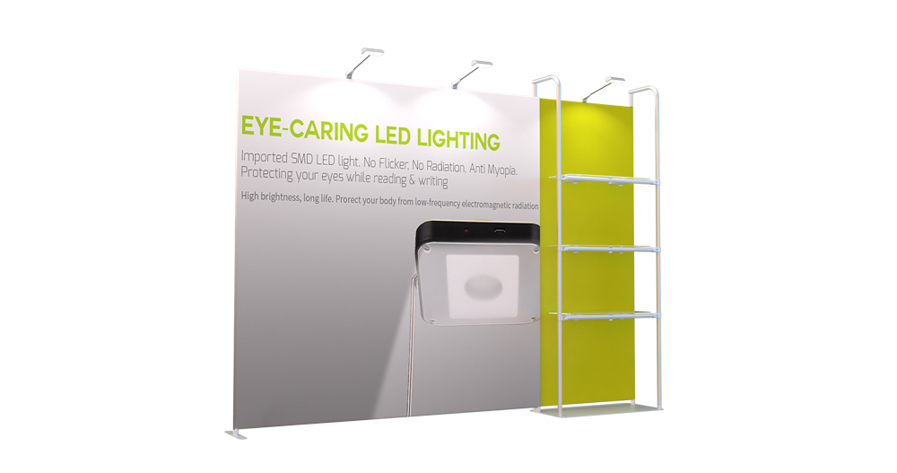 This is a portable modular display system designed specifically for retail stores. With aluminum round tube as frame, equipped with shelves, clothes rails, LED screen, lights and other components. Quick installation without tools.Dye sublimation printing graphic on stretch textile is colorful and bright. The aluminum tubes are connected by spring pin, then cover the graphic banner on the aluminum tube frame, and close with zipper at the bottom .You can quickly fix the graphic banner on the frame, because it is elastic.The graphic is flat and not wrinkled.The graphic can be single-sided or double-sided.