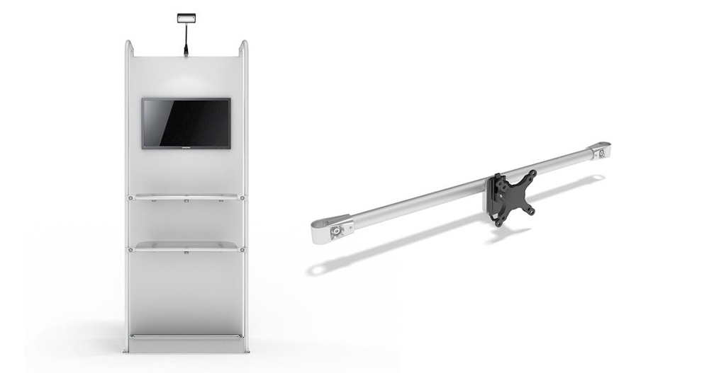 LED arm light,packing box transformable to be a reception counter,clothes rail(with angle or straight),Transparent acrylic shelf,monitor bracket