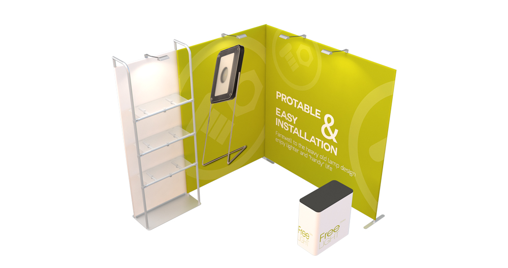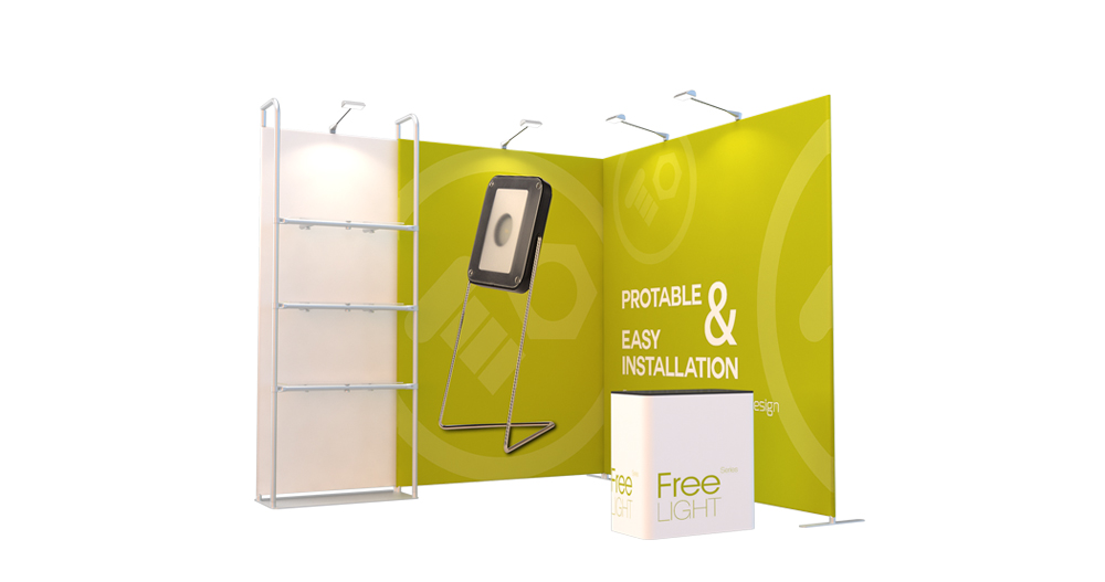 This is a portable modular display system designed specifically for retail stores. With aluminum round tube as frame, equipped with shelves, clothes rails, LED screen, lights and other components. Quick installation without tools.Dye sublimation printing graphic on stretch textile is colorful and bright. The aluminum tubes are connected by spring pin, then cover the graphic banner on the aluminum tube frame, and close with zipper at the bottom .You can quickly fix the graphic banner on the frame, because it is elastic.The graphic is flat and not wrinkled.The graphic can be single-sided or double-sided.