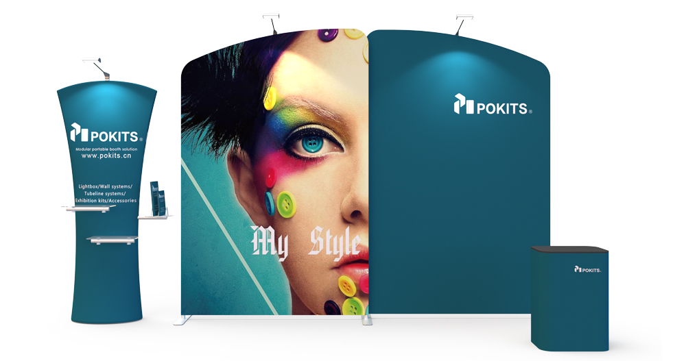 In order to make small and medium-sized individual stand easier, we designed and developed a series of modular individual stand kits. The frame use lightweight but strong aluminum alloy round tube, with dye sublimation printing graphic on the wrinkle-resistant stretch textile. It can be installed in about 10 minutes without tools. The dye sublimation printing is vivid and bright.Each set of stand can be combined into a booth for exhibitions or promotional display, and each element can be used separately as display background of poster .
