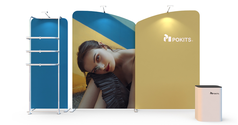 In order to make small and medium-sized individual stand easier, we designed and developed a series of modular individual stand kits. The frame use lightweight but strong aluminum alloy round tube, with dye sublimation printing graphic on the wrinkle-resistant stretch textile. It can be installed in about 10 minutes without tools. The dye sublimation printing is vivid and bright.Each set of stand can be combined into a booth for exhibitions or promotional display, and each element can be used separately as display background of poster .