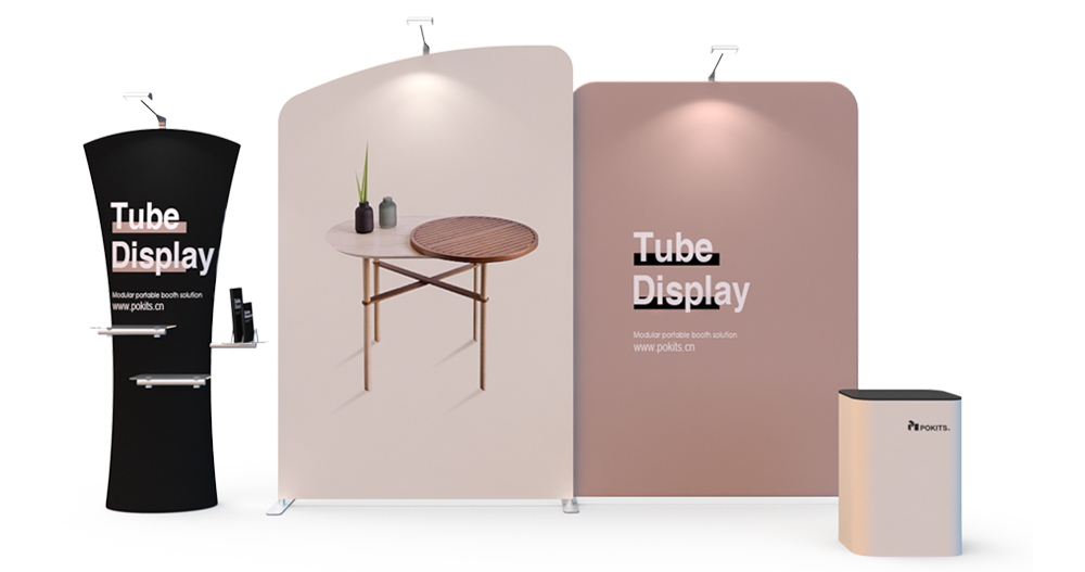 In order to make small and medium-sized individual stand easier, we designed and developed a series of modular individual stand kits. The frame use lightweight but strong aluminum alloy round tube, with dye sublimation printing graphic on the wrinkle-resistant stretch textile. It can be installed in about 10 minutes without tools. The dye sublimation printing is vivid and bright.Each set of stand can be combined into a booth for exhibitions or promotional display, and each element can be used separately as display background of poster .