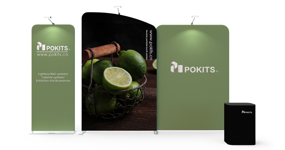 In order to make small and medium-sized individual stand easier, we designed and developed a series of modular individual stand kits. The frame use lightweight but strong aluminum alloy round tube, with dye sublimation printing graphic on the wrinkle-resistant stretch textile. It can be installed in about 10 minutes without tools. The dye sublimation printing is vivid and bright.Each set of stand can be combined into a booth for exhibitions or promotional display, and each element can be used separately as display background of poster .