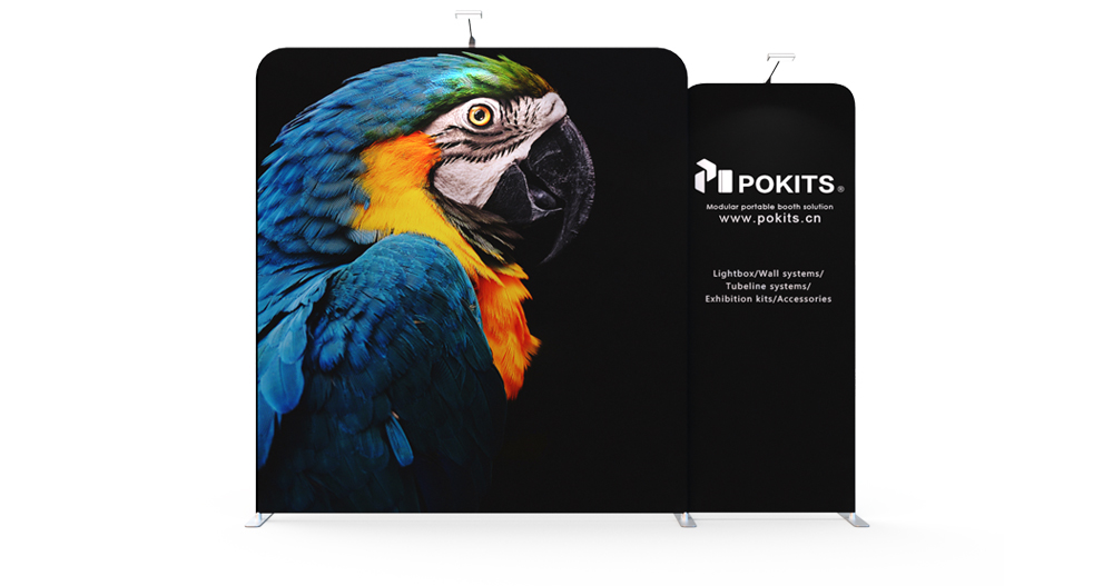In order to make small and medium-sized individual stand easier, we designed and developed a series of modular individual stand kits. The frame use lightweight but strong aluminum alloy round tube, with dye sublimation printing graphic on the wrinkle-resistant stretch textile. It can be installed in about 10 minutes without tools. The dye sublimation printing is vivid and bright.Each set of stand can be combined into a booth for exhibitions or promotional display, and each element can be used separately as display background of poster .
