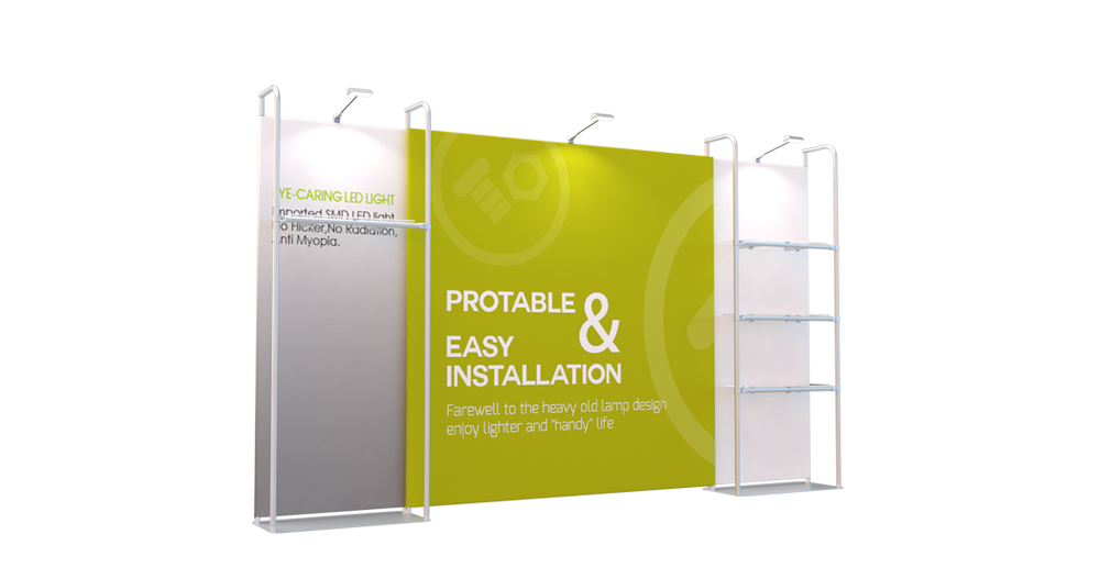 This is a portable modular display system designed specifically for retail stores. With aluminum round tube as frame, equipped with shelves, clothes rails, LED screen, lights and other components. Quick installation without tools.Dye sublimation printing graphic on stretch textile is colorful and bright. The aluminum tubes are connected by spring pin, then cover the graphic banner on the aluminum tube frame, and close with zipper at the bottom .You can quickly fix the graphic banner on the frame, because it is elastic.The graphic is flat and not wrinkled.The graphic can be single-sided or double-sided.