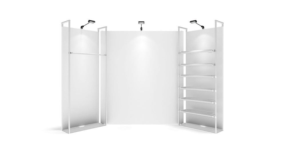 This is a portable modular display system designed specifically for retail stores. With aluminum round tube as frame, equipped with shelves, clothes rails, LED screen, lights and other components. Quick installation without tools.Dye sublimation printing graphic on stretch textile is colorful and bright. The aluminum tubes are connected by spring pin, then cover the graphic banner on the aluminum tube frame, and close with zipper at the bottom .You can quickly fix the graphic banner on the frame, because it is elastic.The graphic is flat and not wrinkled.The graphic can be single-sided or double-sided.